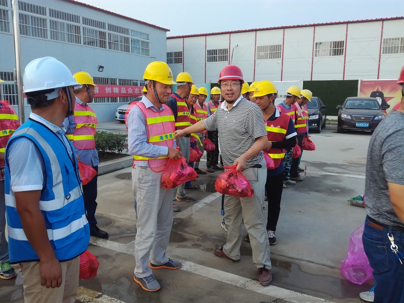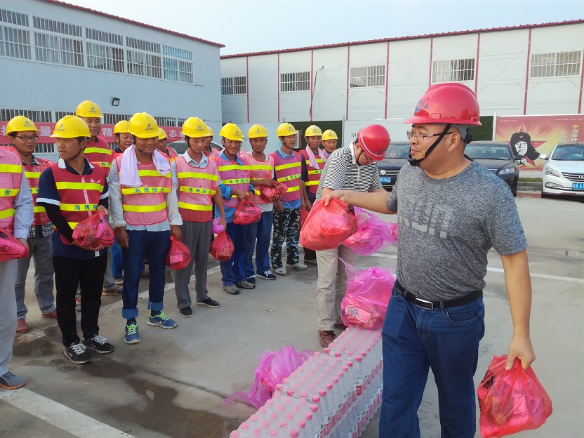 盛夏時節(jié),連續(xù)多日40度的高溫炙烤著合肥大地。7月28日,合肥市經(jīng)開區(qū)重點局張局長、董處長和海納項目辦何主任冒著酷暑,來到我公司海納新能源項目,給項目部送來了防暑降溫物資并逐一發(fā)放到工人手中。張局長對頂著烈日奮戰(zhàn)在一線的全體施工人員給予高度的贊賞和關(guān)心。投資運營中心周總和部分管理人員、現(xiàn)場監(jiān)理、工人代表,參加了慰問儀式。周總代表項目部對重點局領(lǐng)導(dǎo)表示感謝,要求全體員工鼓足干勁,精心組織精心施工,不辜負(fù)各級領(lǐng)導(dǎo)的關(guān)懷和期待。