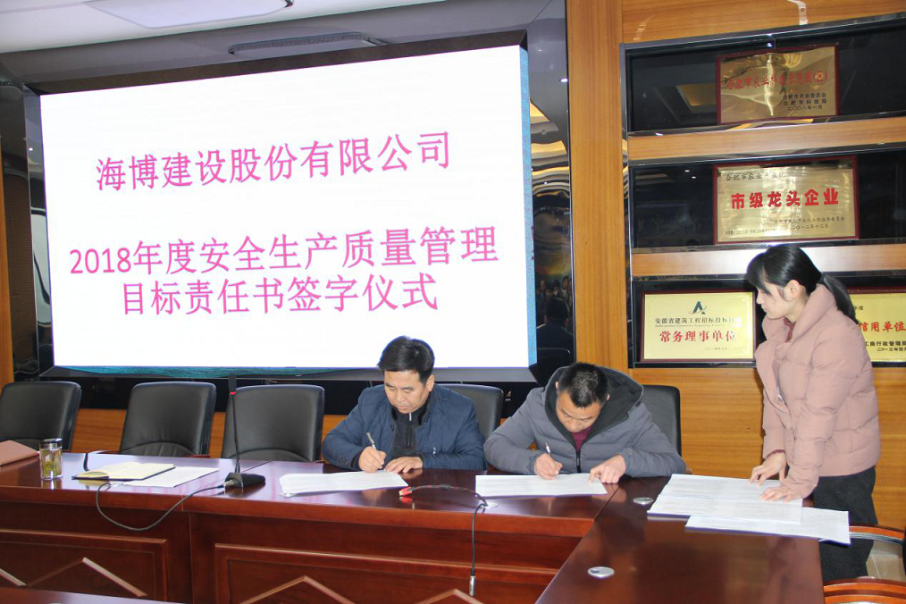 會議還組織了公司法定代表人曹成穩(wěn)經(jīng)理與在建項目的項目經(jīng)理共同簽訂了“2018年度安全生產(chǎn)質(zhì)量管理目標責任書”,并要求各項目部認真貫徹《落實全員崗位安全生產(chǎn)責任制實施辦法通知》精神,深入開展冬季安全檢查,突出重點,全面排查和整治各類事故隱患,加強重大危險源的安全監(jiān)控,積極為春節(jié)和全國“兩會”營造安全穩(wěn)定的社會環(huán)境。