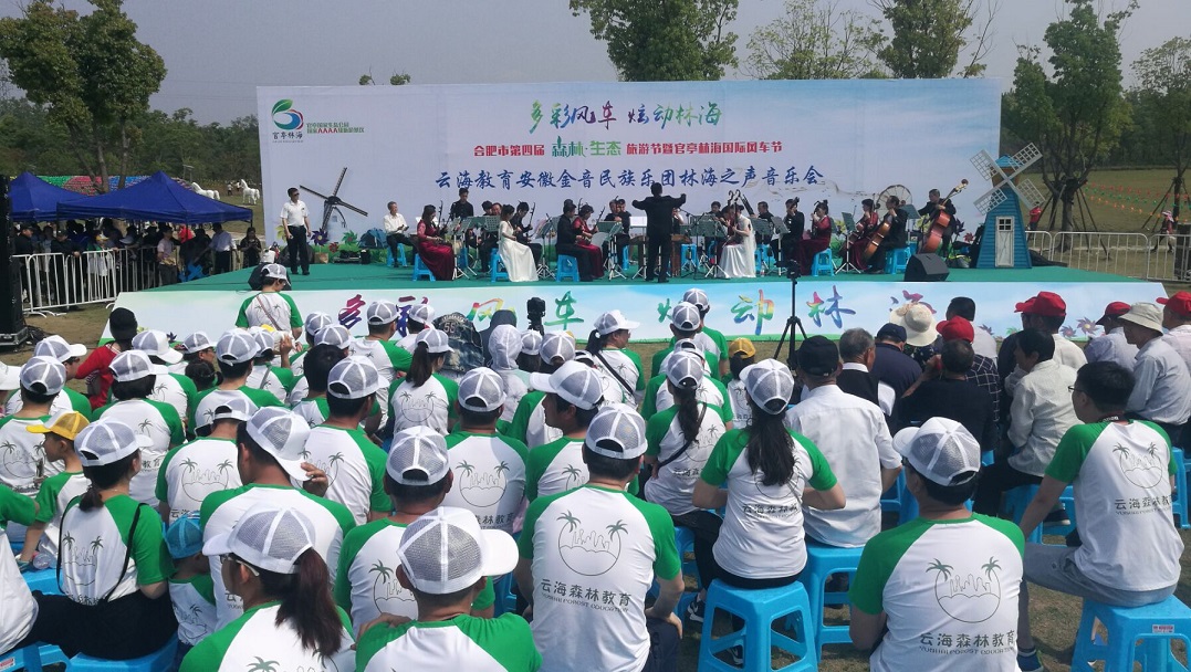 活動首先是欣賞集團(tuán)云海教育板塊為合肥市第四屆森林·生態(tài)旅游節(jié)暨官亭林海風(fēng)車節(jié)精心呈現(xiàn)的云海教育安徽金音民族樂團(tuán)林海之聲音樂會,不僅有云海教育的老師們載歌載舞,還邀請了眾多民間藝術(shù)家為本次音樂會增光放彩。