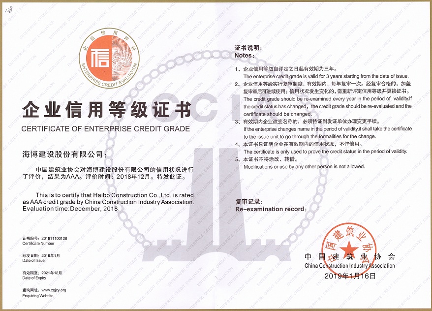 近期,中國建筑業協會通報表彰了2018年度全國建筑業 AAA 級信用企業,并頒發了榮譽證書。我司信用等級被評定為“AAA”級,這是繼中華人民共和國水利部、中國施工企業管理協會給予評定的“AAA”級之后,榮獲的第三項國家主管行業協會頒發的信用等級證書。