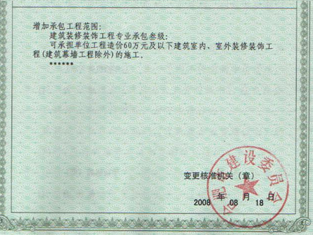 我公司新增裝飾裝修專業(yè)承包三級資質(zhì)獲得批準(zhǔn)