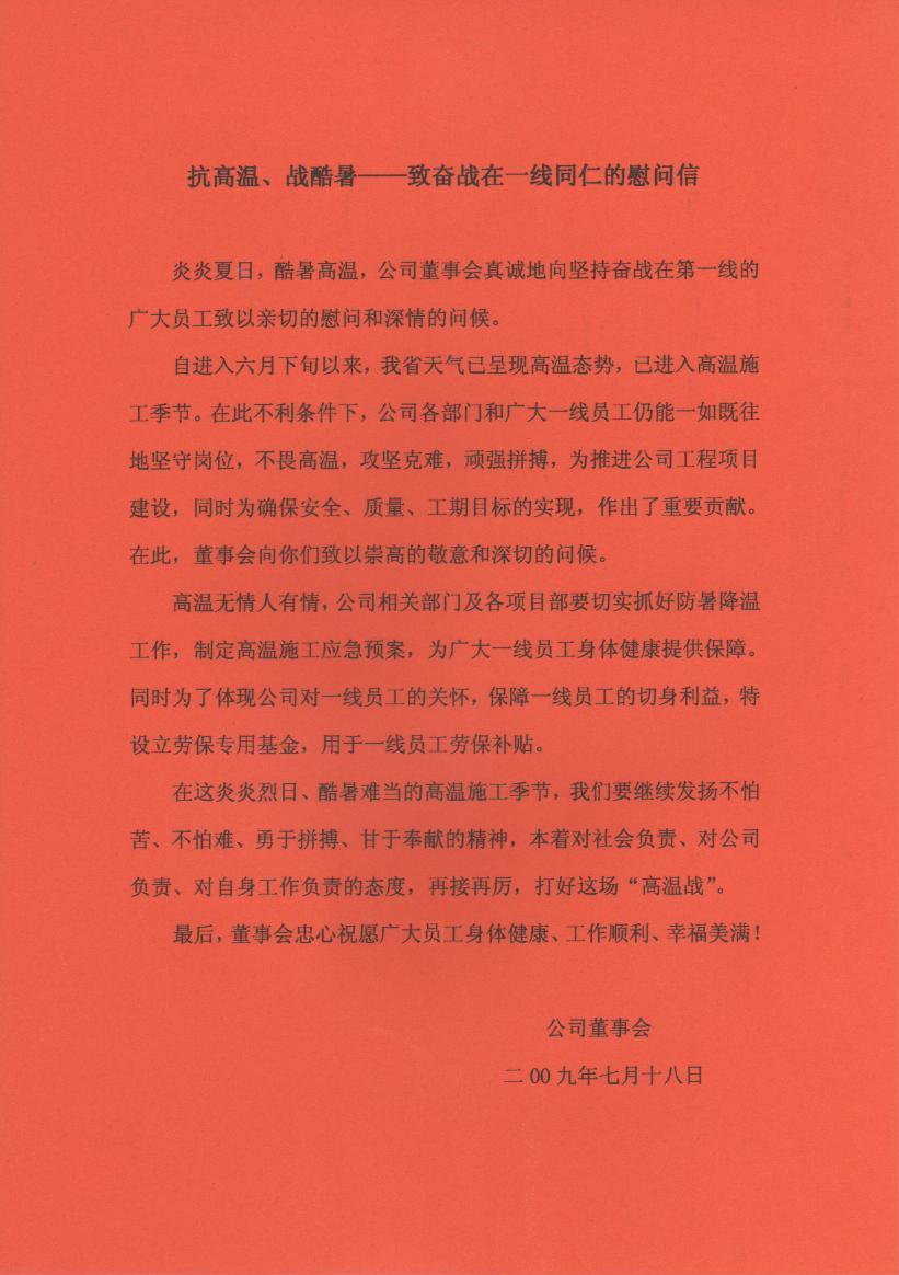 抗高溫、戰酷暑——致奮戰在一線同仁的慰問信