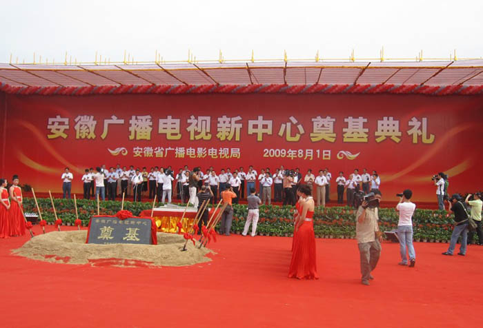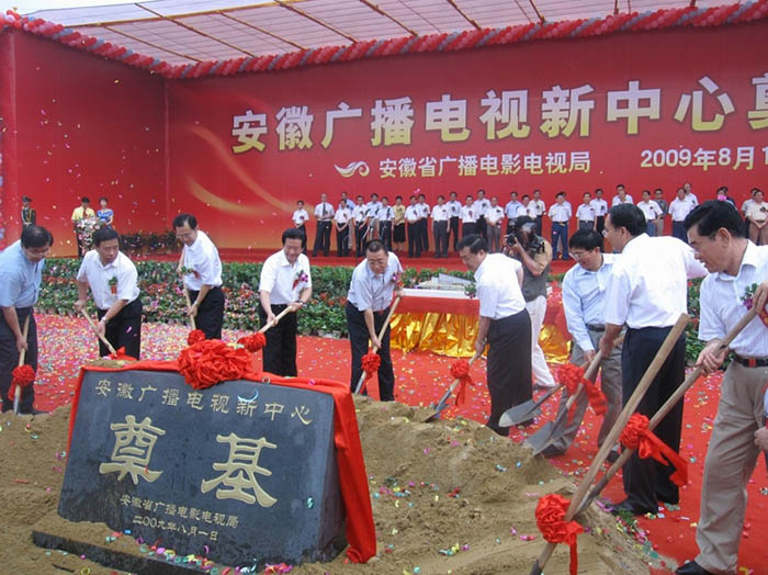 8月1日上午9:18分,合肥市政務(wù)文化新區(qū)美麗的天鵝湖畔,鑼鼓喧天,彩旗招展,我公司承建的安徽“861”行動(dòng)計(jì)劃重大項(xiàng)目、省廣播電視新中心項(xiàng)目奠基開(kāi)工儀式在此隆重舉行。