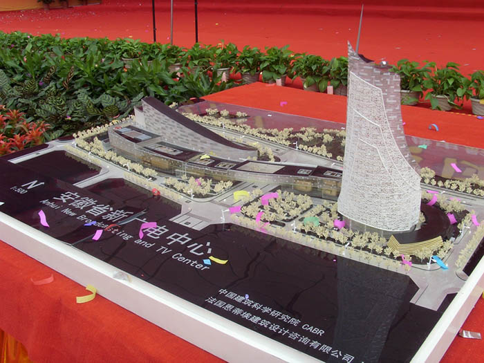 安徽省廣播電視新中心項(xiàng)目位于筆架山街道轄區(qū)內(nèi)的祁門(mén)路與懷寧路西南角,西鄰藍(lán)蝶苑,北臨天鵝湖。主要由兩棟樓構(gòu)成,東邊是49層的主樓,西邊是演播大廳和一個(gè)露天演藝廣場(chǎng)及一個(gè)高13層群樓, 東西兩幢樓之間由一座景觀橋連接,兩樓造型均為S型.項(xiàng)目包括省電臺(tái)、省電視臺(tái)、省傳輸總臺(tái)、省廣電傳媒產(chǎn)業(yè)集團(tuán)和省網(wǎng)絡(luò)公司等單位的節(jié)目制作、播出、傳輸以及監(jiān)控機(jī)房等。新中心占地273畝,將分兩期建設(shè),一期建設(shè)26萬(wàn)平方米,投資17億元;主樓高226.5米,建成后將成為合肥市最高建筑;廣電新中心3600平方米的演播廳,為國(guó)內(nèi)最大的電視演播廳,將于明年10月1號(hào)投入使用。